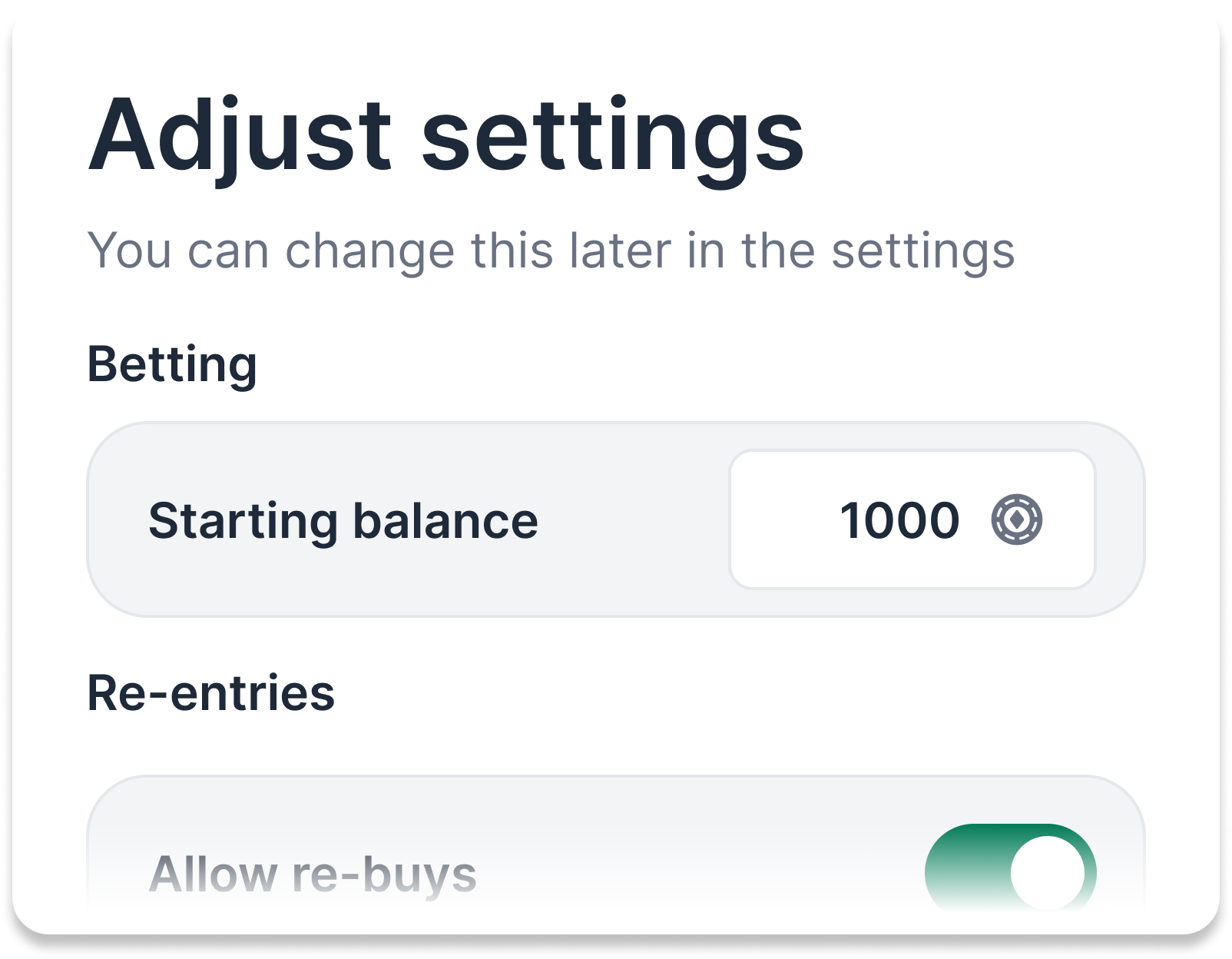 Each player starts with a set amount of virtual funds to wager on games during the league. At the end of the league, the player with the highest balance wins.