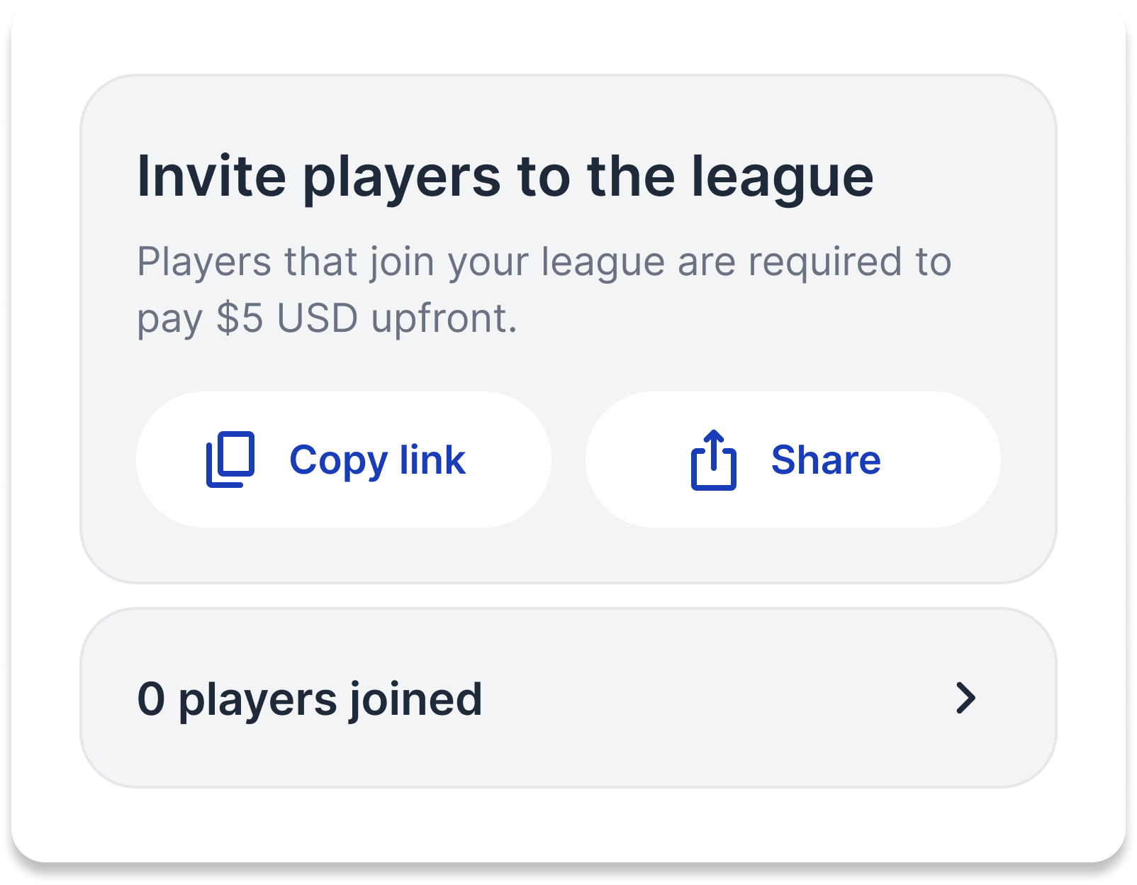 Create your league and invite your friends! Commissioners that get 5 or more teammates to join their league will get their $5 league fee returned to them
